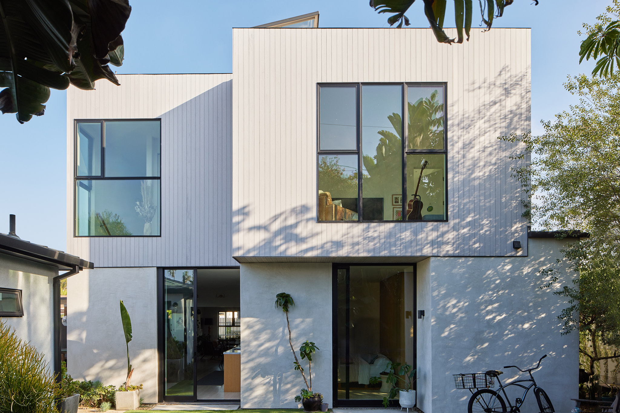 In this westside remodel, an emphasis was placed on infusing the existing small house with an airy, luminous addition. Two children’s bedrooms, a jack-n-jill bathroom, an upstairs laundry room and a family room were meticulously crafted in the new second floor to optimize natural light and maximize views within each area.