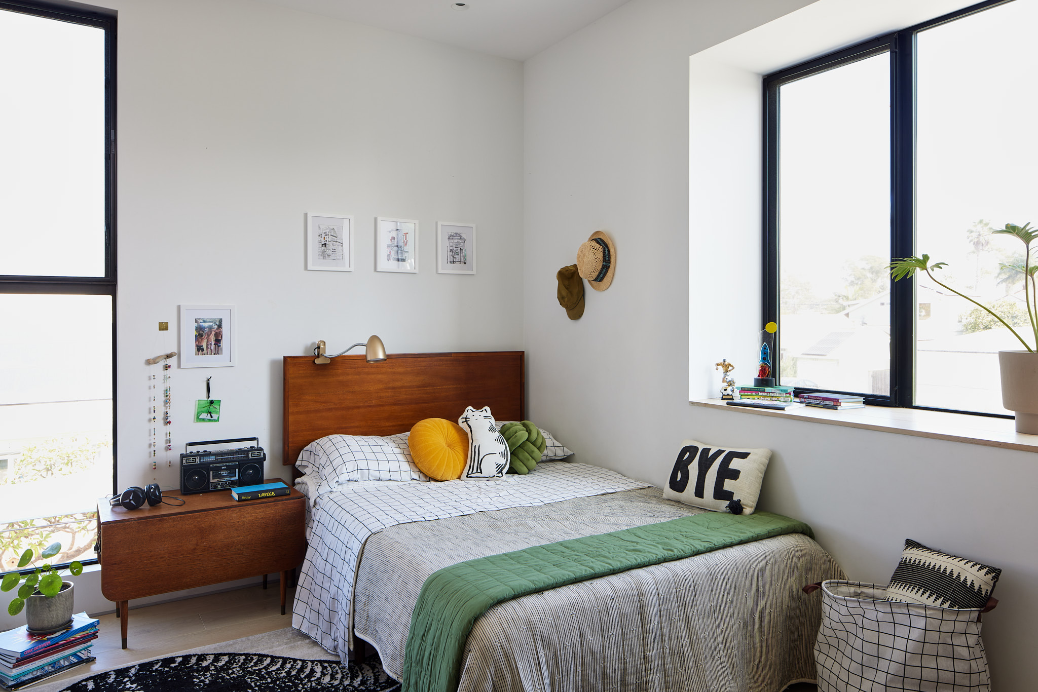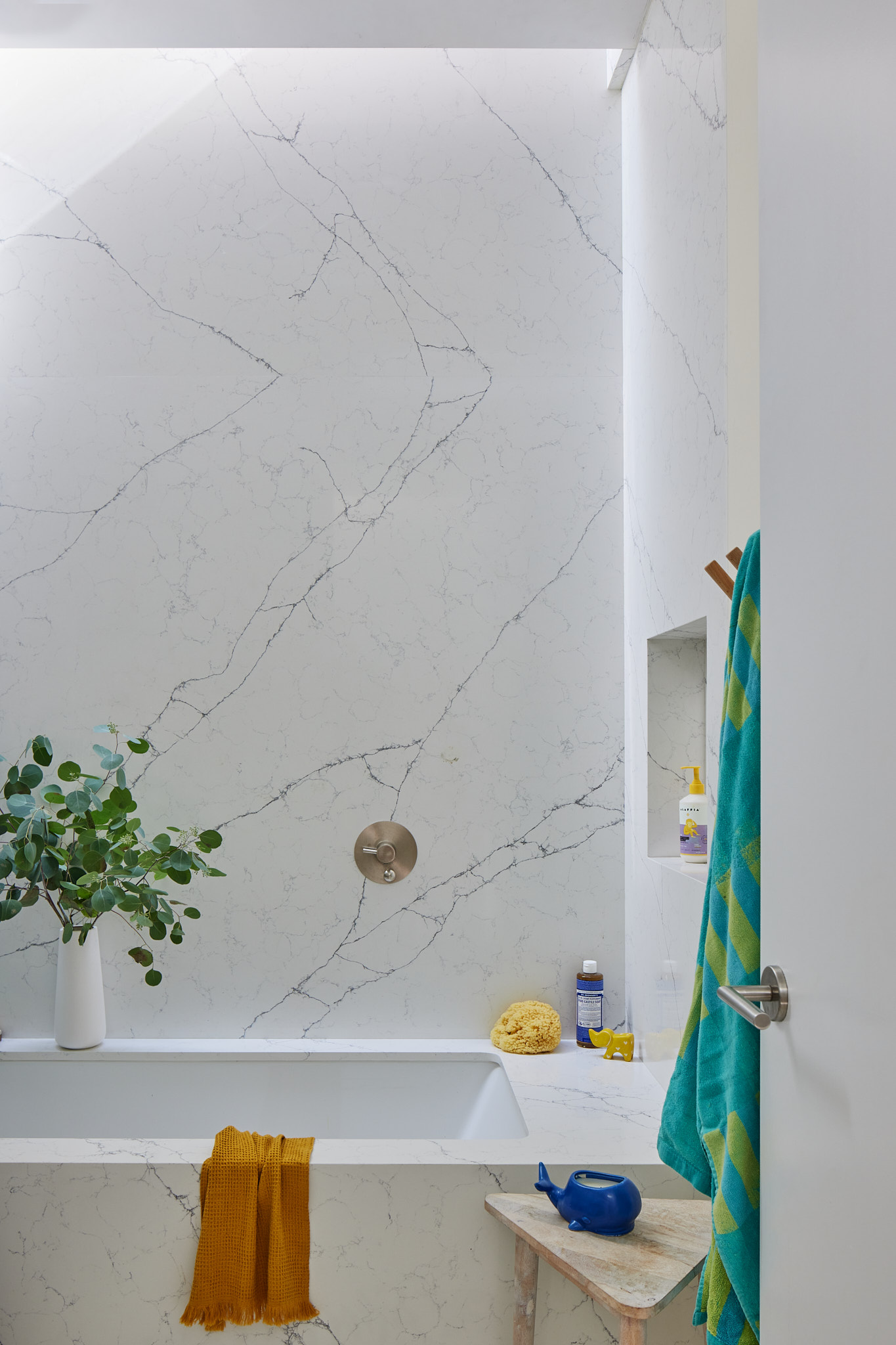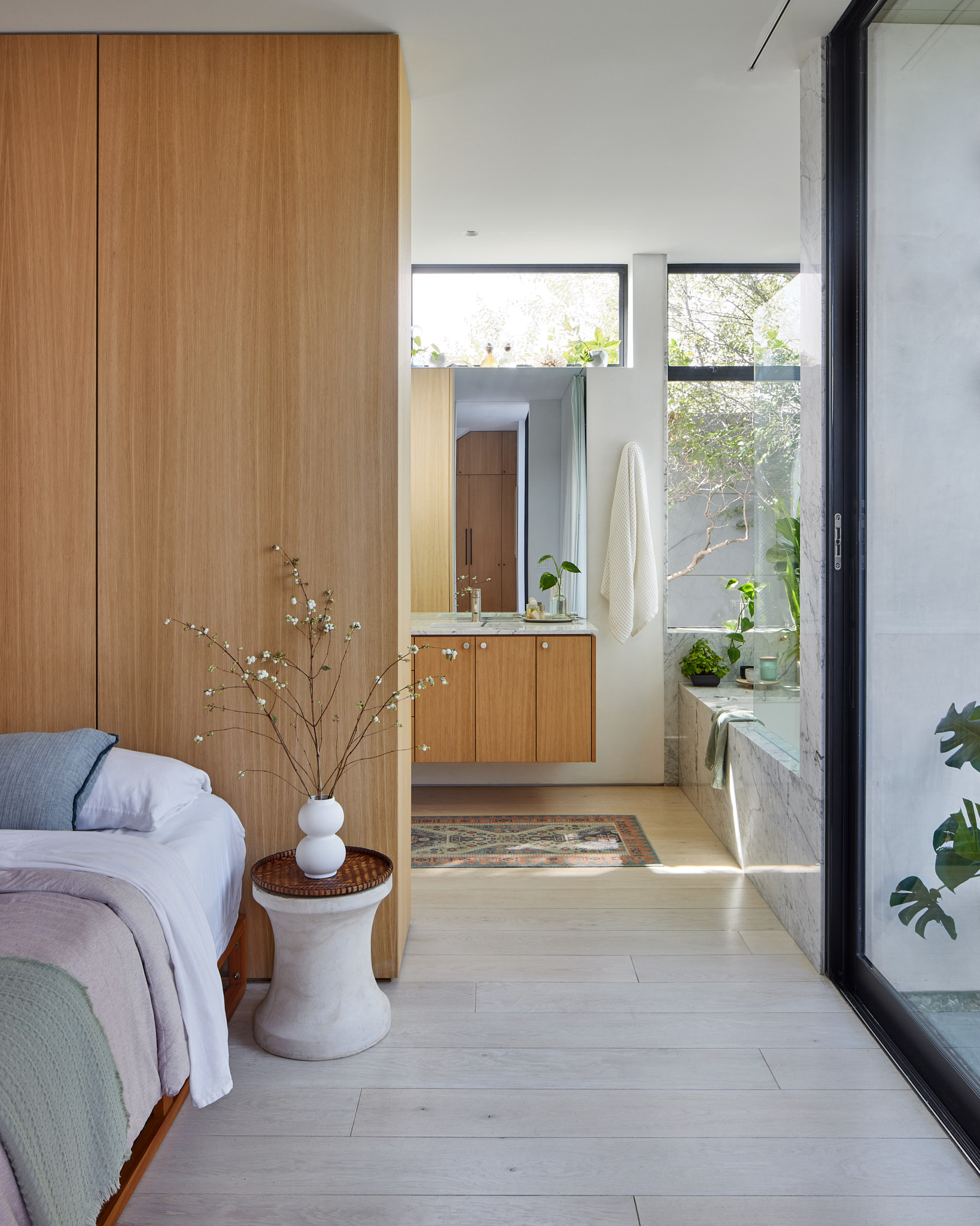 The primary bedroom, its ensuite bathroom, and the guest bathroom were revitalized and updated to complement the bright and modern aesthetic of the entire renovation.