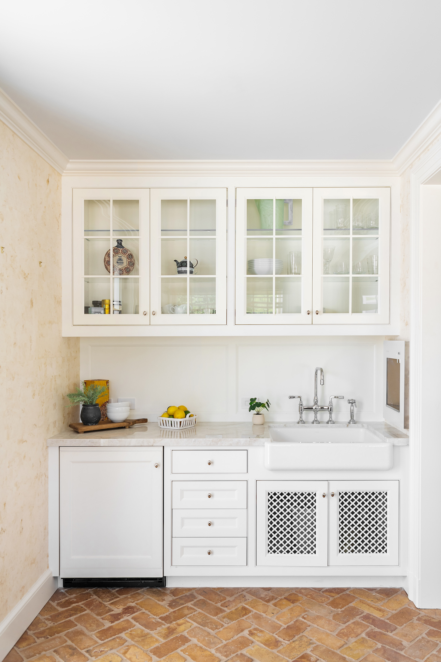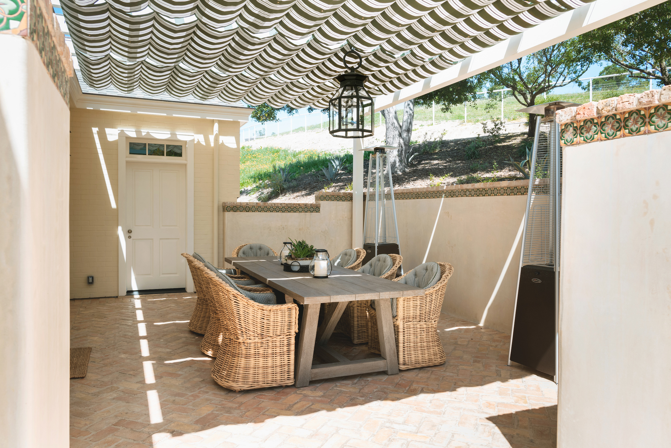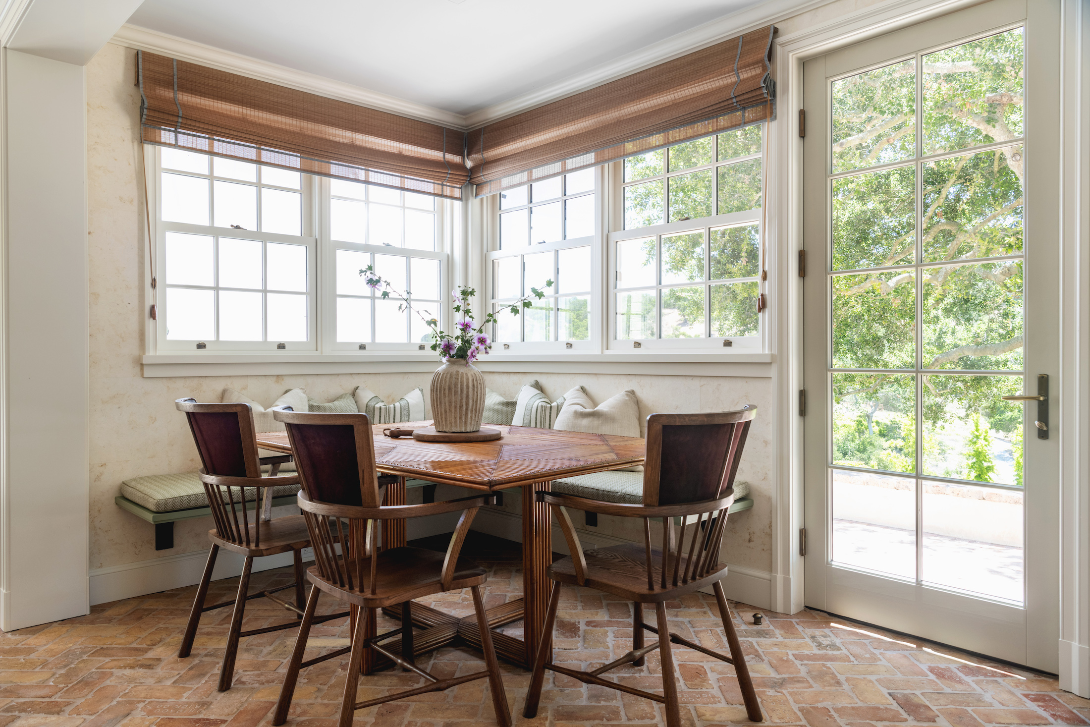 An oasis of tranquility, this retreat atmosphere is manifested by its elegant and inviting interior. It features a coved ceiling, reclaimed brick and natural wood floors that exude rustic charm, as well as abundant windows that provide captivating views while flooding the space with natural light.